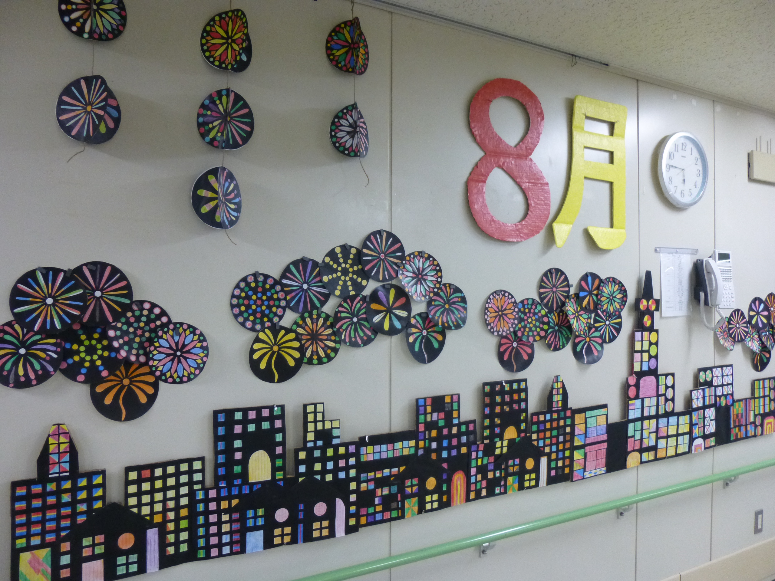 マイナビ介護のみらいラボ/【8月】高齢者と一緒に作る夏の「花火」の壁面飾り